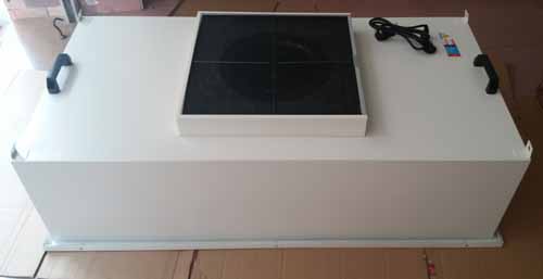 FFU層流罩設(shè)有初效過濾器、高效過濾器兩級過濾網(wǎng)。風(fēng)機(jī)從FFU頂部將空氣吸入并經(jīng)初、高效過濾器過濾,過濾后的潔凈空氣在整個出風(fēng)面以0.45M/S±20%的風(fēng)速勻速送出。