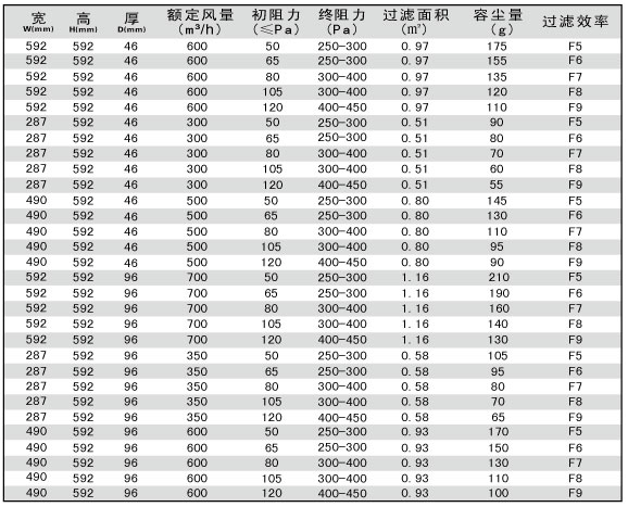 過(guò)濾效率:45%~95%@1微米