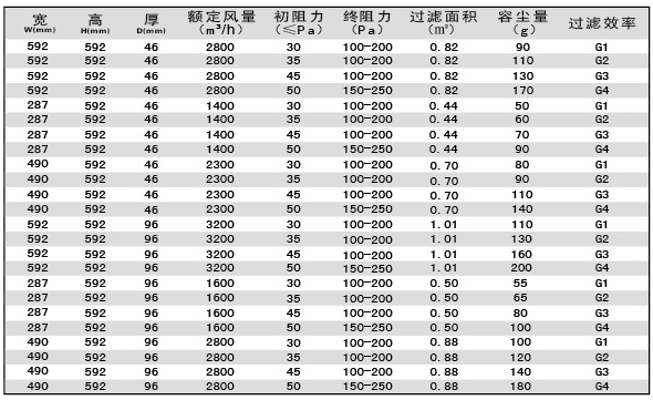 板式初效過濾器技術(shù)參數(shù)